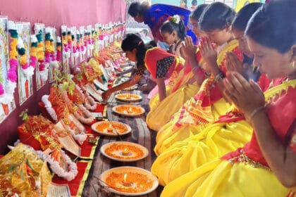 গীতা জয়ন্তীতে গ্রামীন মহিলাদের সমবেত আরতি মন্মথপুরে