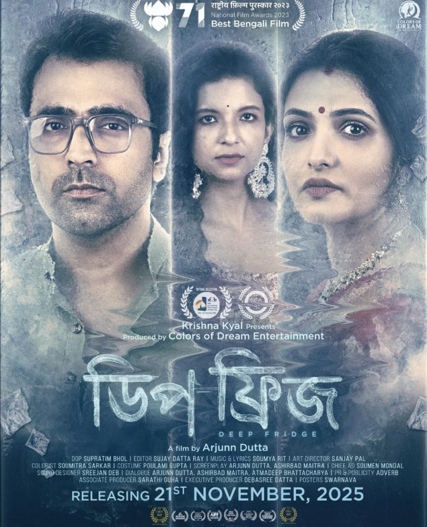 কে টিভি বাংলা ডিজিটাল: কোজাগরী লক্ষ্মীপুজার পবিত্র দিনে উন্মোচিত হল জাতীয় পুরস্কারপ্রাপ্ত বাংলা চলচ্চিত্র ‘ডিপ ফ্রিজ’এর অফিসিয়াল পোস্টার (Deep Fridge)। এই বিশেষ মুহূর্তে পরিচালক অর্জুন দত্ত (Arjunn Dutta) এবং প্রযোজক কৃষ্ণ কয়াল তাঁদের নতুন ছবির প্রথম ঝলক সামনে আনলেন।