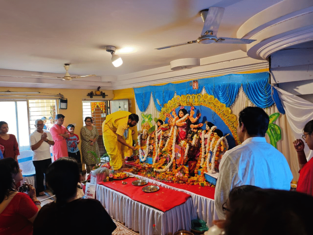 মায়ের প্রতিমা আসে কলকাতা থেকেই, উপাচারও আসে বাংলার (Durga Puja 2025) মাটির ঘ্রাণ মেখে। আর সেই সুবাসে মিলেমিশে যায় ভিনরাজ্যের মানুষজন। মহালয়া থেকেই শুরু হয়ে যায় পুজোর রীতি রিওয়াজ। জাঁকজমক ও ঐতিহ্য বজায় রেখেই কলকাতার ব্রাহ্মণই পুজো করেন। মিষ্টি, হালুয়া থেকে খাওয়া দাওয়ার রকমারি পদ সবেতেই থাকে বাঙালিয়ানা।