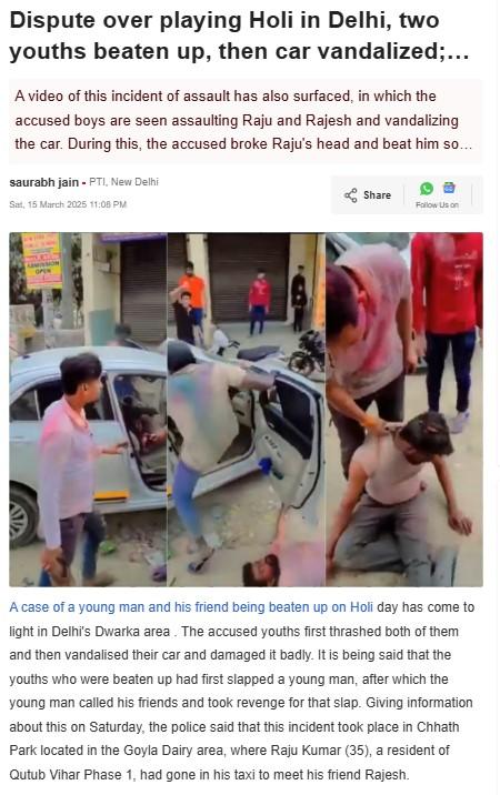 এরপর উক্ত সূত্র ধরে পরবর্তী সার্চ করলে ২০২৫ সালের (Fact Check) ১৫ মার্চ লাইভ হিন্দুস্তানে ভাইরাল ভিডিও থেকে নেওয়া একাধিক স্ক্রিনশট-সহ একটি প্রতিবেদন পাওয়া যায়। সেই প্রতিবেদন থেকে জানা যায়, ভিডিওটি গত ১৪ মার্চ হোলির দিন দিল্লির দ্বারকার গোয়লা ডেইরি এলাকার ছঠ পার্কে তোলা হয়েছিল। সেদিন ওই পার্কে হোলি উদ্যাপনের সময় একটি স্থানীয় ছেলের গায়ে ভুলবশত রঙ দিয়ে ফেলে রাজু কুমার নামক এক যুবক। এরপর বিষয়টি নিয়ে ছেলেটির সঙ্গে রাজু কুমারের কথাকাটাকাটি শুরু হয় এবং এক পর্যায়ে ছেলেটিকে চড় মেরে বসে রাজু কুমার।