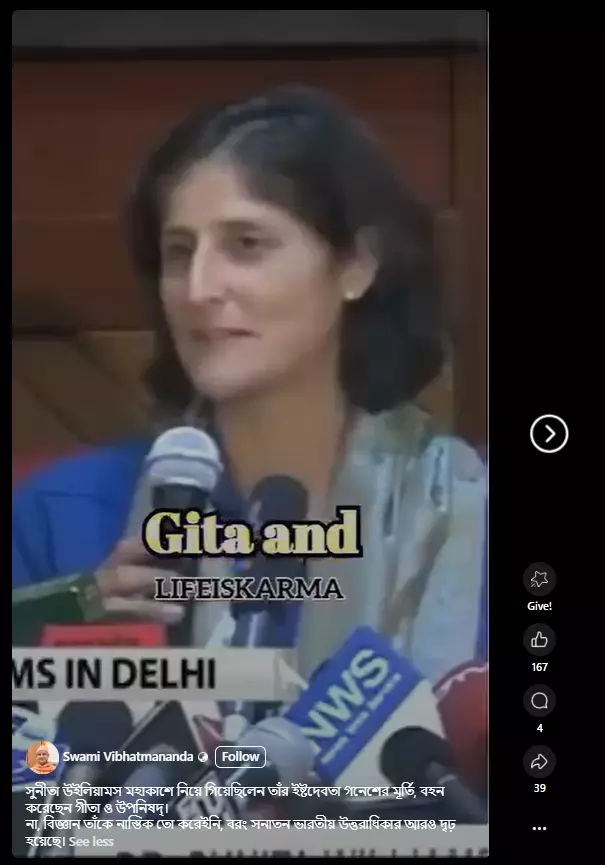 Fact Check: ভিডিওতে দেখতে পাওয়া মহাকাশচারী সুনীতা উইলিয়ামসের বক্তব্য সাম্প্রতিক নয় » KTV Bangla