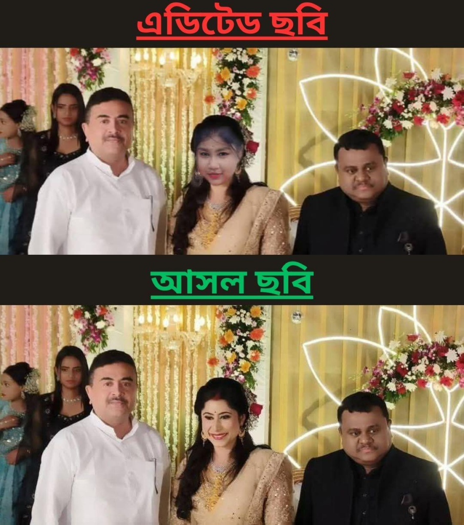সব মিলিয়ে বোঝাই যাচ্ছে যে, একটি এডিটেড ও সম্পাদিত ছবি ছড়িয়ে মিথ্যা দাবি করা হচ্ছে যে শুভেন্দু ও সৌমেন্দু অধিকারীর পাশে ওই বিতর্কিত তরুণীকে দেখতে পাওয়া গিয়েছে।