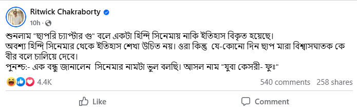 Kesari Chapter 2: অক্ষয়ের ছবি দেখে হতাশ সৃজিত, 'ছাপরি চ্যাপ্টার গু' বললেন ঋত্বিক! » KTV Bangla