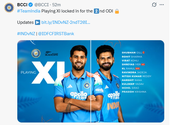 রোহিত শর্মা, শুভমন গিল, বিরাট কোহলি, শ্রেয়স আইয়ার, কেএল রাহুল, রবীন্দ্র জাডেজা, নীতীশ কুমার রেড্ডি, হর্ষিত রানা, কুলদীপ যাদব, মহম্মদ সিরাজ, প্রসিধ কৃষ্ণ