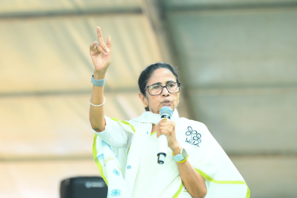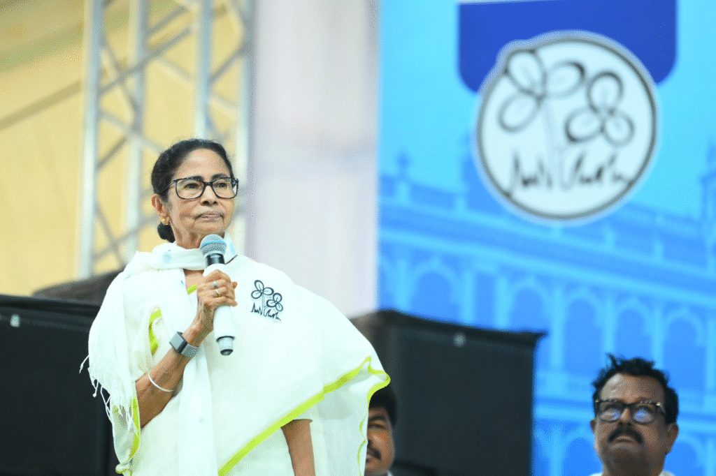 বিরোধীদের বিরুদ্ধে আরও কড়া ভাষায় তিনি বলেন, “বাইরের লোক দিয়ে টাকা, গুন্ডা আমদানি করছো। বাংলার বদনাম করছো। তোমরা বদলা নিতে গিয়ে, পিছন থেকে খেলা করছ।” এমনকি কটাক্ষ করে বলেন, “লজ্জা করে না বিজেপি, আমি হলে তো গলায় দড়ি মরতাম।” রাজ্যের উন্নয়ন প্রসঙ্গ তুলে মমতা বলেন, “আমরা বলি না, আমরা করে দেখাই। লক্ষ্মীর ভান্ডার শুরু হয়েছিল ৫০০ টাকা দিয়ে, এখন ১৫০০ এবং ১৭০০ টাকা।” পাশাপাশি প্রতিশ্রুতি দেন, “আগামীদিনে সকলকে বাড়ি করে দেওয়া হবে, বাড়ি বাড়ি পানীয় জল পৌঁছে যাবে।”