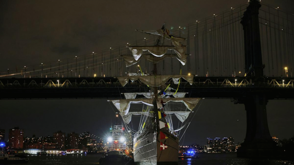 স্থানীয় সময় শনিবার রাত সাড়ে ৮টা নাগাদ জাহাজটি নিউ (Mexican Navy Ship) ইয়র্কের দিকে এগোচ্ছিল, যার আশপাশে বহু মানুষ দাঁড়িয়ে ছিল। সেই সময় সোশ্যাল মিডিয়ায় ছড়িয়ে পড়া একাধিক ভিডিওতে দেখা যায়, সেতুর নীচে মাস্তুলগুলির সংঘর্ষ হতেই জাহাজের আলো নিভে যেতে থাকে, এবং এতে বেশ কয়েকজন নাবিক ভারসাম্য হারিয়ে পড়ে যান। এই দুর্ঘটনার পর, জাহাজটি ধীরে ধীরে নদীর এক পাশের দিকে চলে যায়। যদিও এই ভিডিওগুলির সত্যতা সম্পর্কে এখনও নিশ্চিত হওয়া যায়নি।