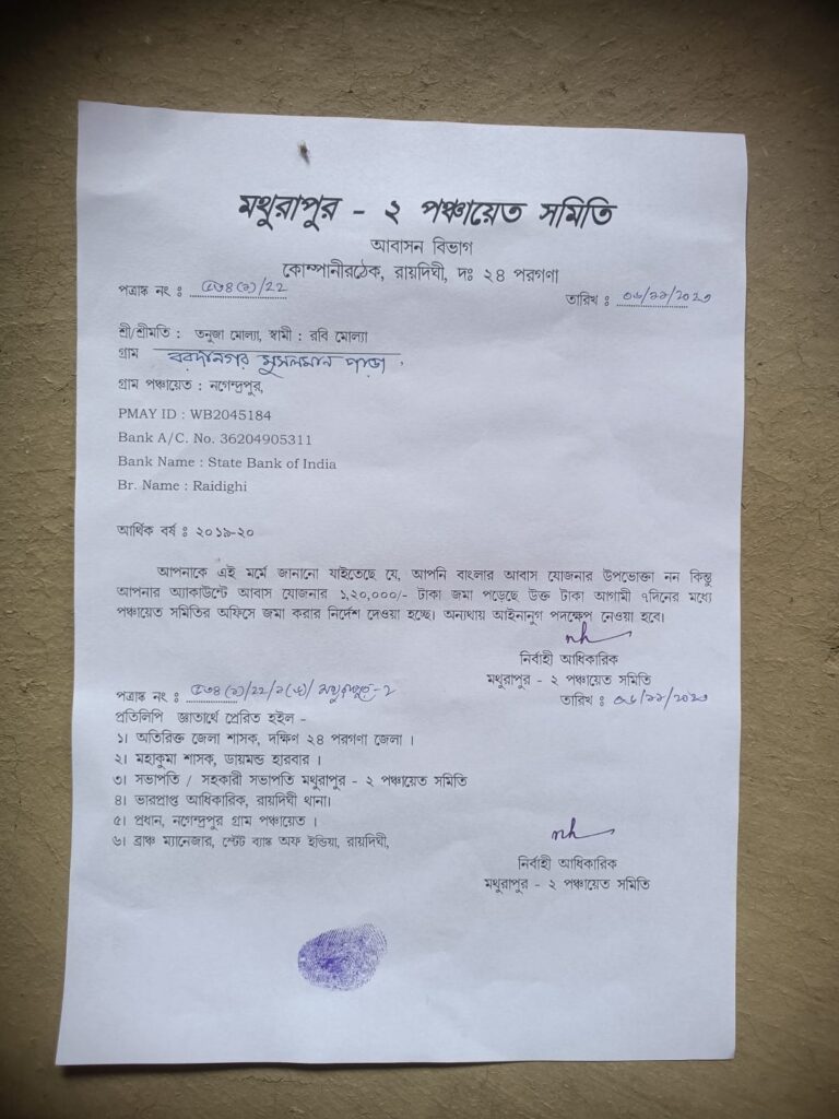 বিজেপি করাই কি অপরাধ উপভোক্তার? (Names Excluded From Housing Scheme)