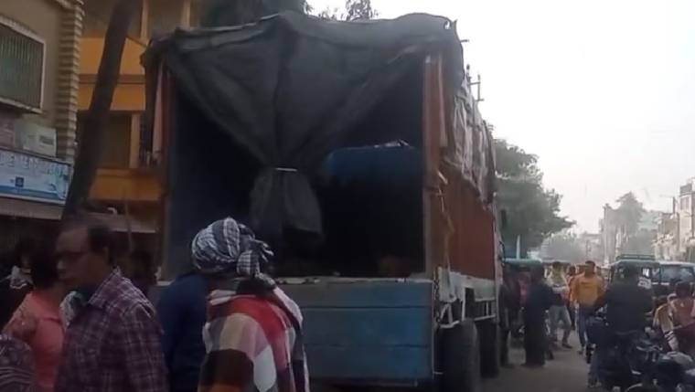 লরি থেকে সিলিন্ডার নামাতে গিয়ে বিপত্তি (Rampurhat)