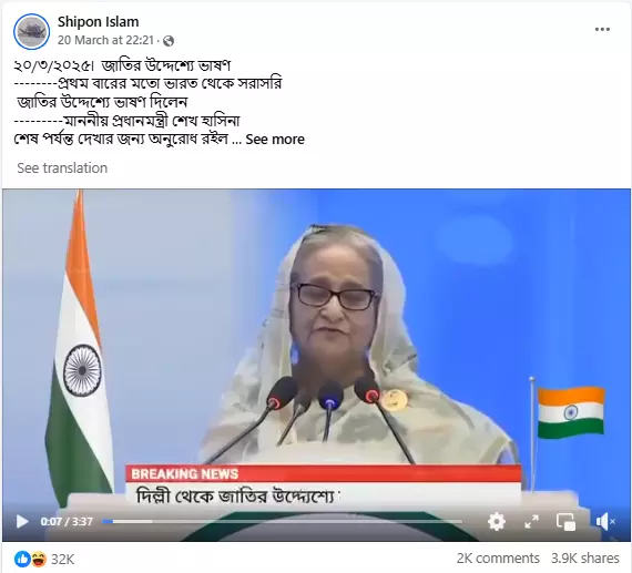 Fact Check: দিল্লি থেকে শেখ হাসিনার সাম্প্রতিক ভাষণ দাবি করে ছড়ান হল পুরনো ভিডিও » KTV Bangla