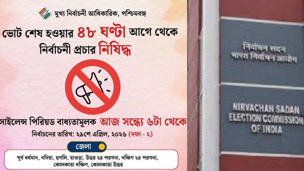 আজ সন্ধ্যা ৬টার পর থেকে সংশ্লিষ্ট নির্বাচনী এলাকাগুলোতে আর কোনও রকম নির্বাচনী প্রচার চালানো যাবে না। কোনো রাজনৈতিক সভা, মিছিল বা লাউডস্পিকারের ব্যবহার সম্পূর্ণ নিষিদ্ধ। জনমানসে শান্ত পরিবেশ বজায় রাখতেই এই ‘সায়লেন্স পিরিয়ড’ বাধ্যতামূলক করা হয়েছে।