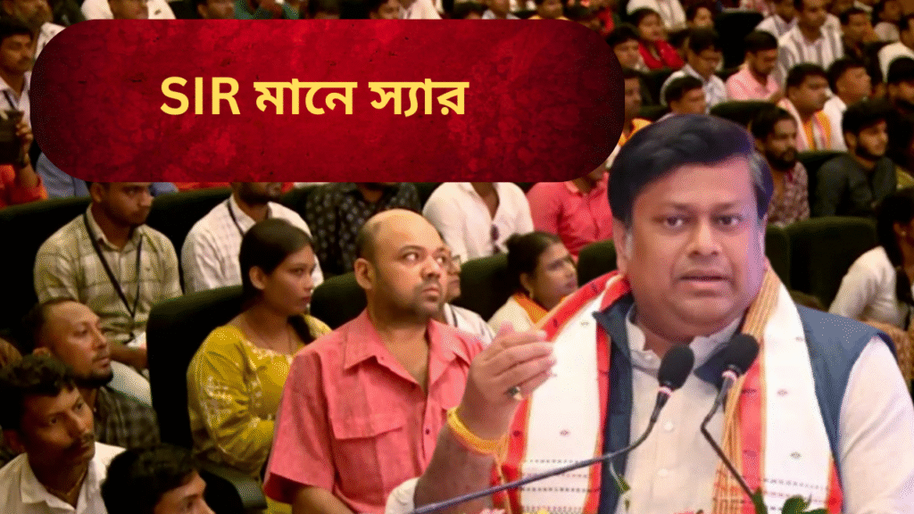 এস আইআর নিয়ে সুকান্ত মজুমদার বলেন,’SIR মানে ছোট করে বললে স্যার, স্যার যেমন দুষ্টু ছাত্রদের মানুষ করে, দুষ্টু রাজনৈতিক দল যারা ছাপ্পা ভোট দেয়, গুন্ডা গিরি করে, তাদের মানুষ করবে এই স্যার -SIR’