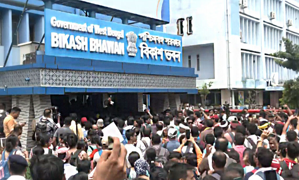 Protest at Bikash Bhavan: শিক্ষকদের বিকাশ ভবন অভিযান ঘিরে উত্তেজনা, পুলিশের সঙ্গে ধস্তাধস্তি, গেট ভাঙলেন চাকরিহারারা » KTV Bangla