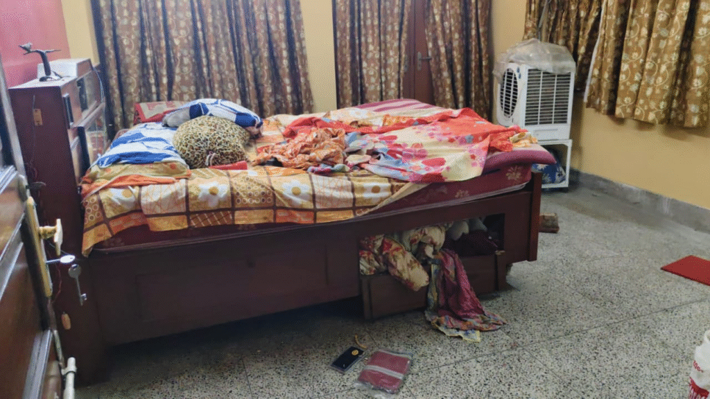 হুগলির হিন্দমোটরের দেবাইপুকুরের বাড়িতে এখন কেউ থাকেন না, মাঝে মাঝে যাতায়াত করেন বুলা চৌধুরী। সেই ফাঁকা বাড়ির পিছনের দরজা দিয়ে চোর আসে বলেই মনে করা হচ্ছে। এর আগেও তার বাড়িতে এরকম চুরির ঘটনা ঘটেছে আবারও একবার এমন ঘটনা ঘটায় স্বাভাবিক ভাবেই ভেঙে পড়েছেন তিনি। উত্তরপাড়ার এই বাড়ির নাম রেখেছিলেন ‘সুন্দর বাড়ি’। সেই ‘সুন্দর বাড়ির’ অবস্থা এখন লন্ডভন্ড (Bula Chowdhury)।