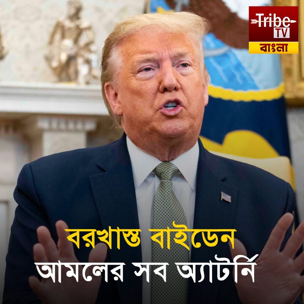 ট্রাইব টিভি বাংলা ডিজিটাল: জো বাইডেনের সময় নিযুক্ত সমস্ত অ্যাটোর্নিকে বরখাস্তের নির্দেশ(US President Donald Trump) দিলেন মার্কিন প্রেসিডেন্ট ডোনাল্ড ট্রাম্প। গতকাল মঙ্গলবার মার্কিন প্রেসিডেন্ট জো বাইডেনের হাতে নিয়োগ পাওয়া ইউএস অ্যাটর্নিদের যাঁরা এখনো কাজে আছেন, তাঁদের বরখাস্ত করার আদেশ দিয়েছেন বর্তমান প্রেসিডেন্ট ডোনাল্ড ট্রাম্প। মঙ্গলবার এক্স হ্যান্ডলে পোস্ট করে ট্রাম্প লিখেছেন,বাইডেনের আমলে বিচার বিভাগের যে ধরনের রাজনীতিকরণ হয়েছে, তা আগে কখনও হয়নি।