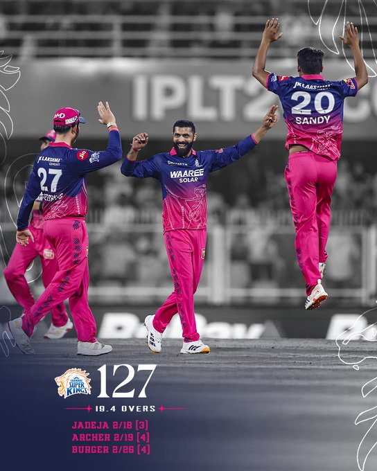 ম্যাচের আগেই জোড়া ধাক্কা আসে চেন্নাই শিবিরে। ধোনি এবং ব্রেভিস দুজনেই বেশ কিছু ম্যাথ খেলতে পারবেন না। টস হেরে প্রথম ব্যাট করতে নাম চেন্নাই। শুরু থেকেই করুণ হাল চেন্নাইয়ের। বোমারু বিমানের তাণ্ডবে যেন চেন্নাইয়ের ব্যাটিং এক ধ্বংসস্তূপ। যেখানে শুধু লেগে আছে অতীতের বিজয় গাঁথা। জেমি ওভারটন ৪৩ না করলে হয়ত চেন্নাই ১০০ রানও করতে পারতো না। এই দিন ব্যর্থ হলেন সঞ্জু, ঋতুরাজ, শিবম দুবে।