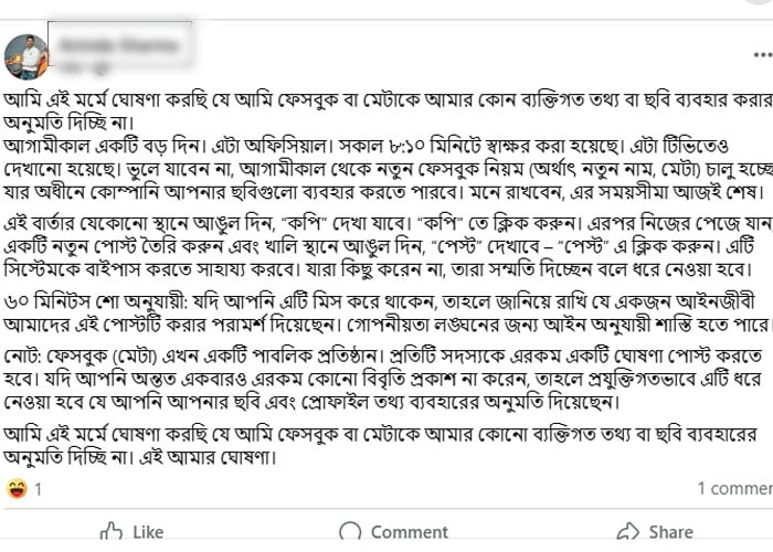 পোস্টটি কেন ঘুরে ফিরে আসছে? (Viral Facebook Privacy Post)