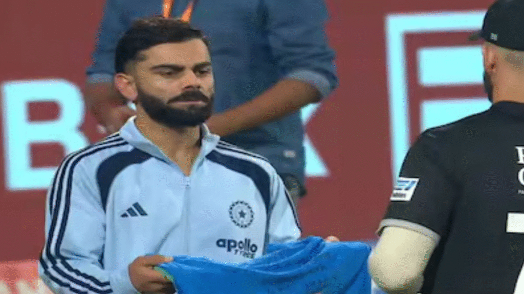 কোহলি সই করা নিজের জার্সি তুলে দিলেন মিচেলের হাতে। খেলা শেষে যখন দুই দলের ক্রিকেটাররা দাঁড়িয়ে ছিলেন, সেই সময় দেখা যায় মিচেলের দিকে কোহলিকে এগিয়ে যেতে। বিরাটের হাতে একটি জার্সি। সেই জার্সি মিচেলকে দেন কোহলি। মিচেলের হাসিমুখ বুঝিয়ে দিচ্ছল যে এই বিরাট উপহারে তিনি খুশি। কিছুক্ষণ কথাও হয় দুজনের মধ্যে। এই ঘটনার ভিডিও সমাজমাধ্যমে ছড়িয়ে পড়তে সময় নেয়নি ভাইরাল হতে। নেটিজেনরা বলেন এই কারণেই বিরাট এত বড় মানের খেলোয়াড়। কারণ তিনি প্রতিপক্ষকে সম্মান করতে জানেন। বিপক্ষের কৃতিত্ব স্বীকার করে তাঁকে সম্মান জানাতে জানেন।